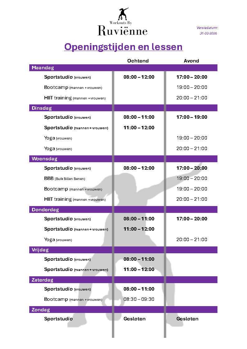 Workouts By Ruviënne is een sportstudio speciaal voor vrouwen met ook Workouts for Men.
